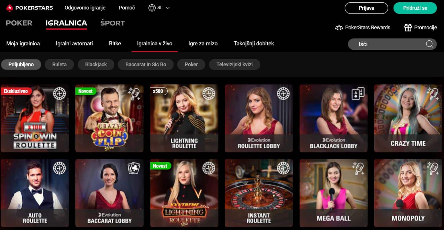 PokerStars Casino v zivo