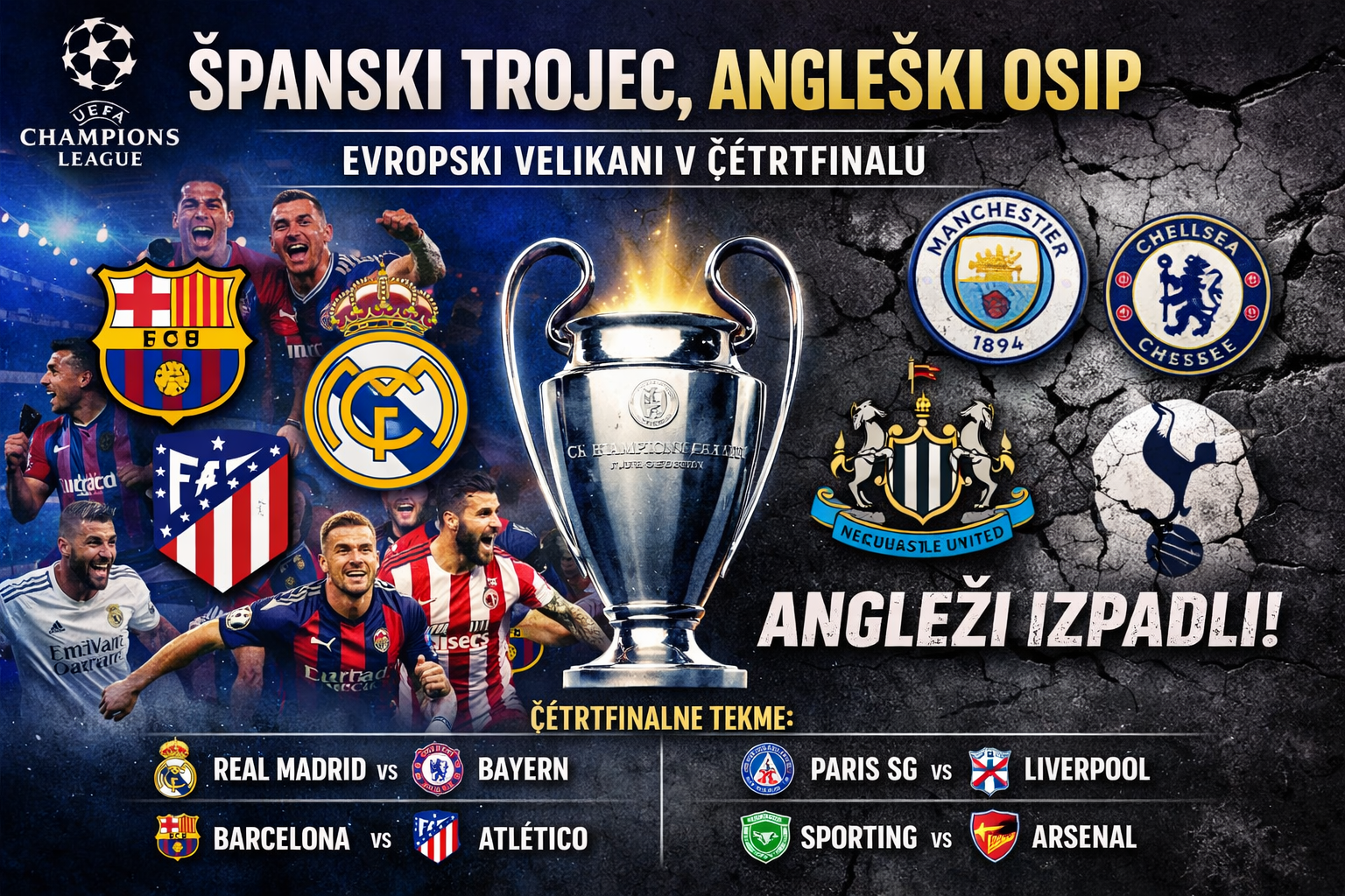Osmina finala je prinesla jasen signal: dominacija ene lige v Evropi ni samoumevna. Angleški klubi so po odličnem skupinskem delu močno padli, medtem ko so španski predstavniki izkoristili priložnost in znova stopili v ospredje.